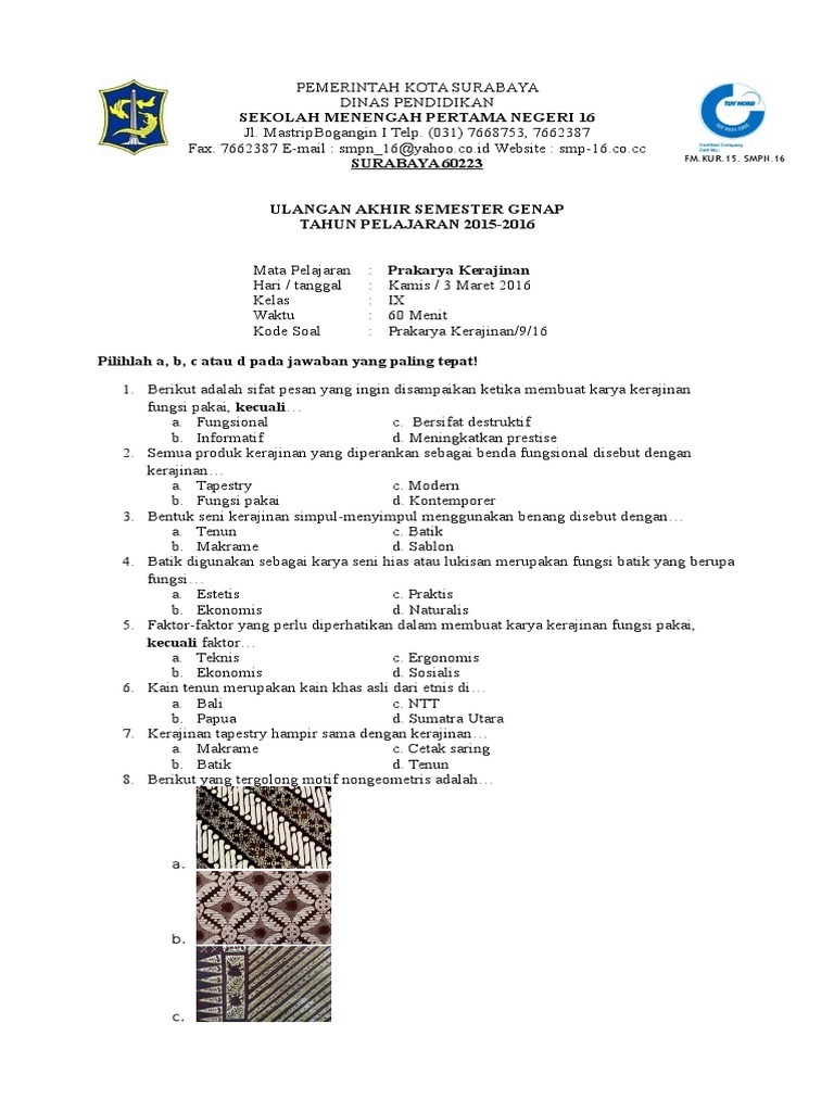 Soal Uas kerajinan