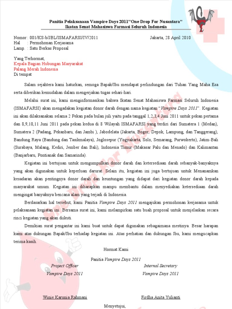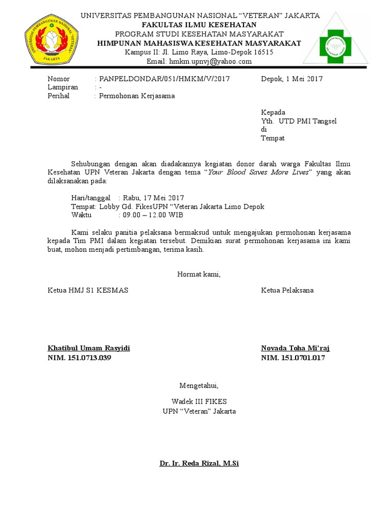 Surat Permohonan Kerjasama Donor Darah Ke Pmi - Dapatkan Contoh