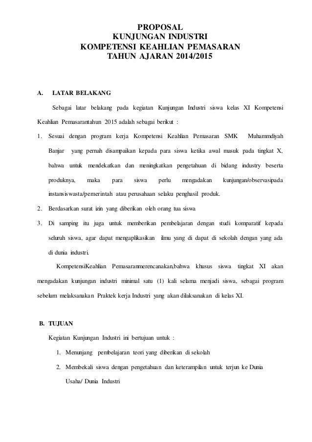 Contoh Proposal Kunjungan Isndustri