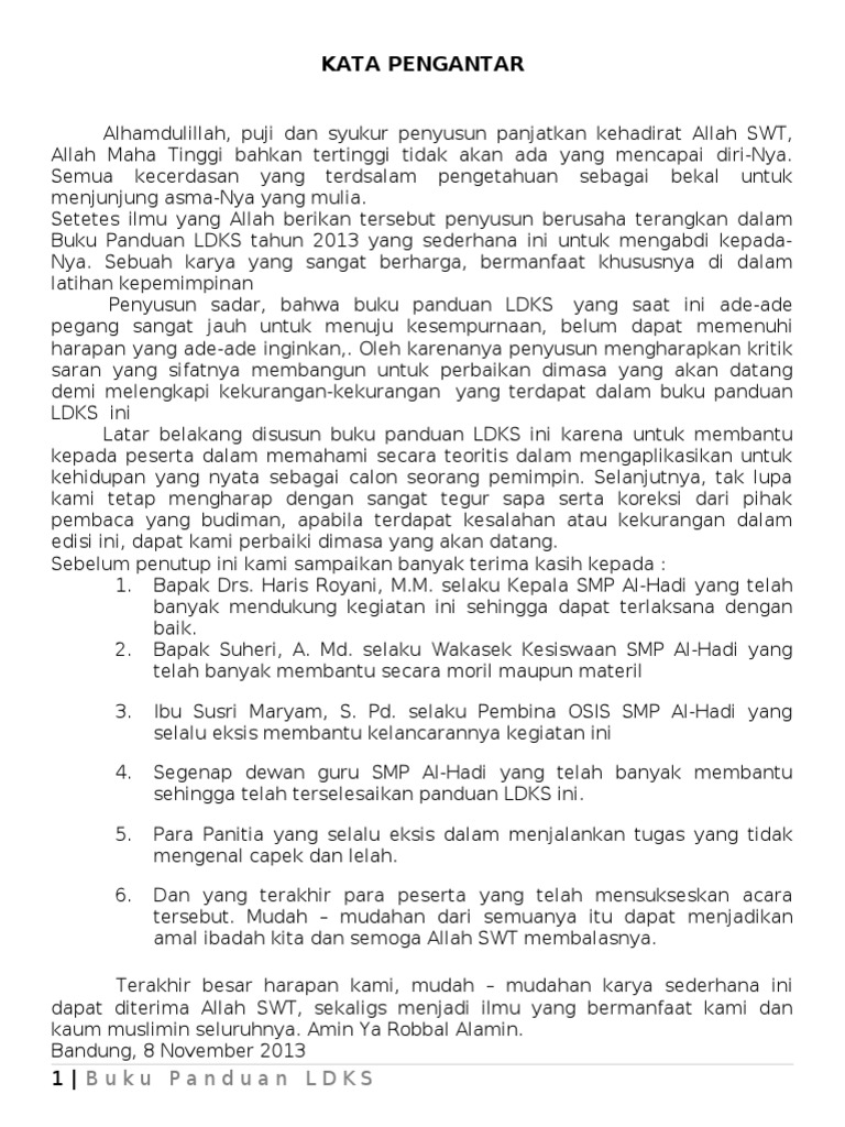 Kata Pengantar Proposal Ldks