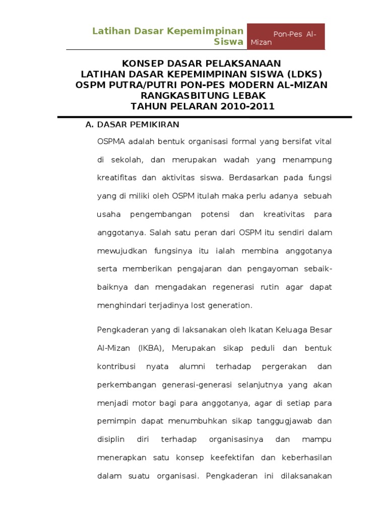 DOC) Rencana Kegiatan Latihan Dasar Kepemimpinan (LDK | Nirwanto Mr - Academia.edu