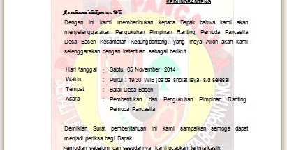 Cantoh Surat Pemberitahuan Pelantikan Pemuda Pancasila
