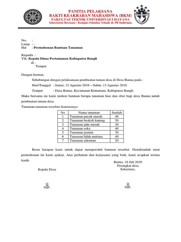 Format Surat Permohonan Ke Dinas Pertamanan