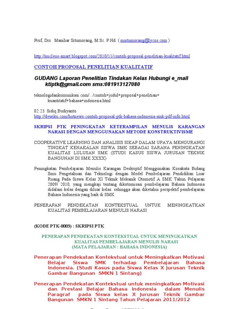 Contoh Proposal Ptk Bahasa Indonesia Kurikulum 2013 - Guru Ilmu Sosial