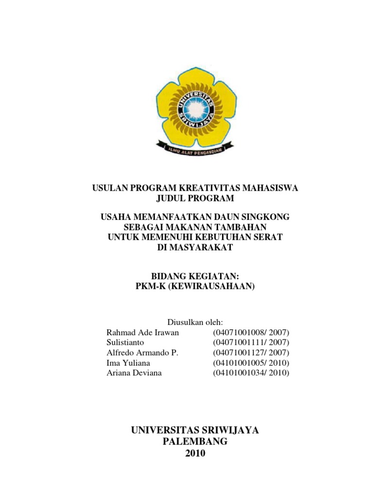 DOC) PROPOSAL PROGRAM KREATIVITAS MAHASISWA PKM-K | Farid Muhammad - Academia.edu