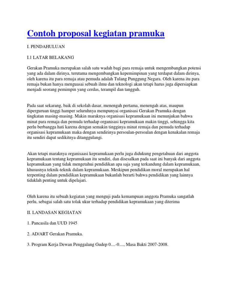 Pdf) Contoh Proposal Kegiatan Pramuka yang Singkat dan Jelas - Seputar Proposal