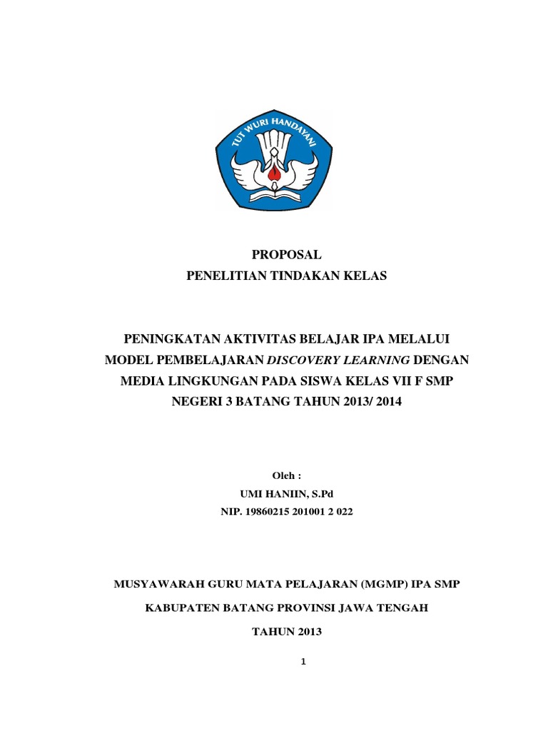 Contoh Proposal PTK | MGMP Matematika SMP Gugus 01 KBB