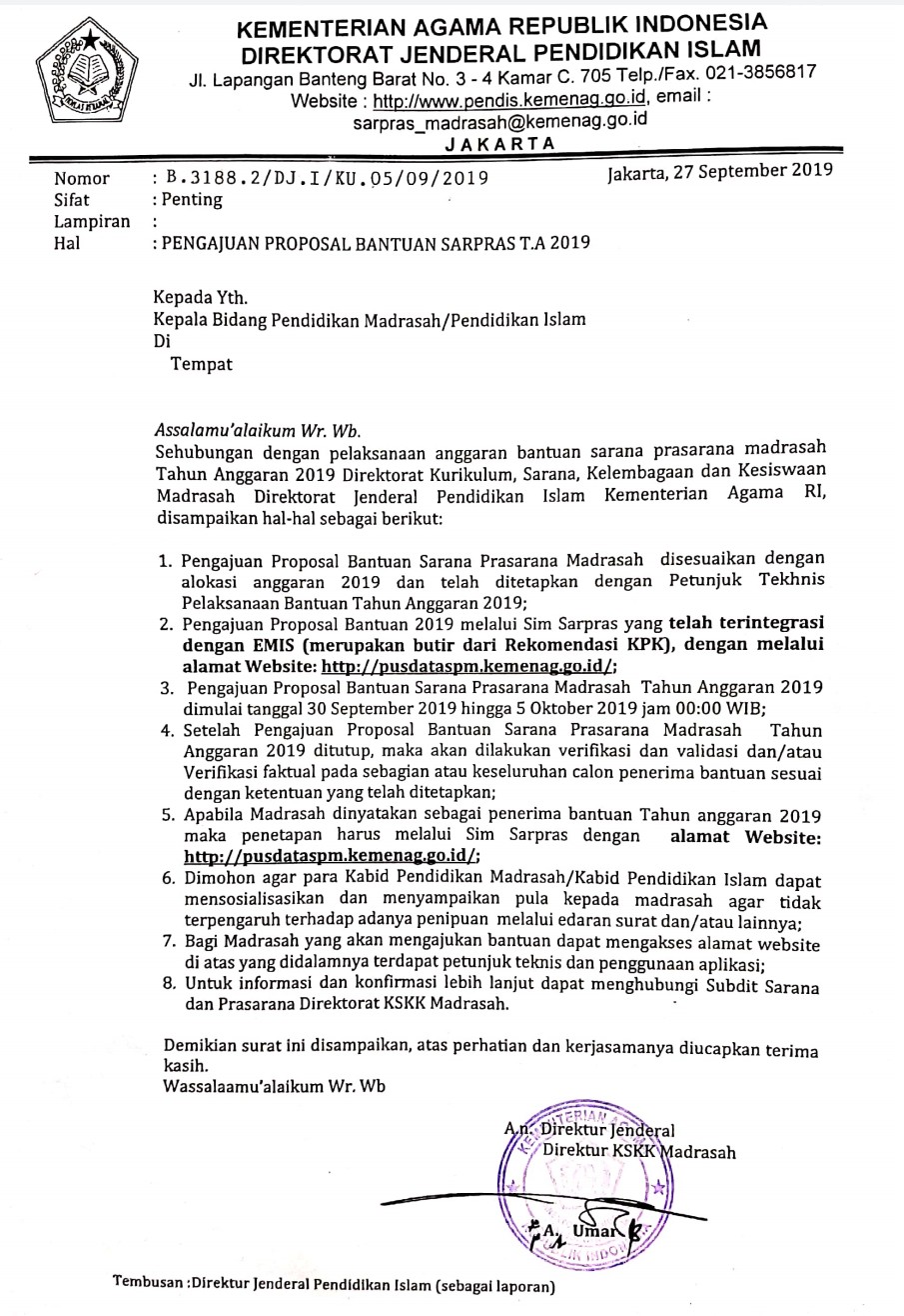Info Penting Pengajuan Proposal Bantuan Sarana Dan Prasarana Madrasah 2019