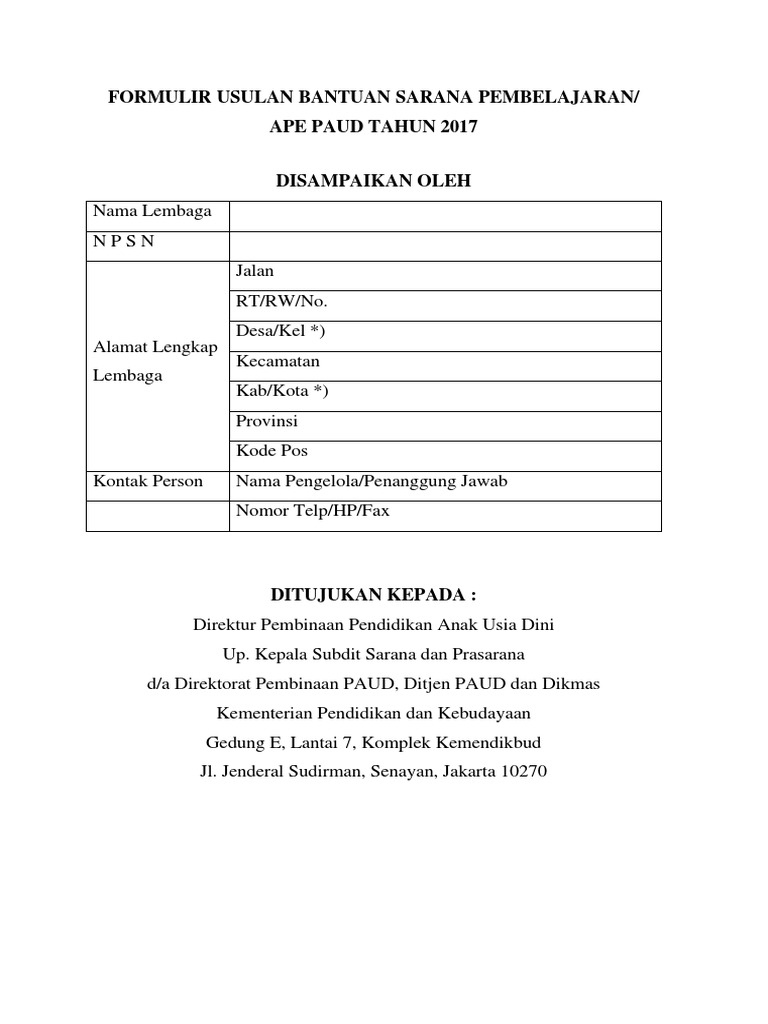 Contoh Proposal Bantuan Sarana Dan Prasarana Paud - Temukan Contoh