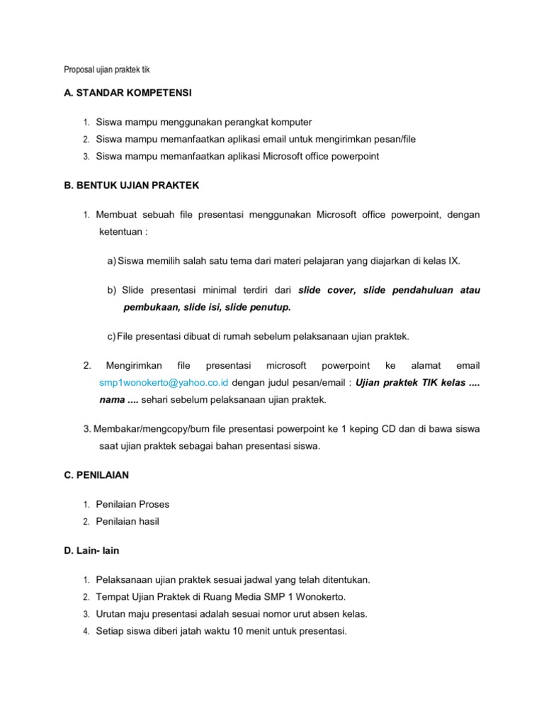 Contoh Proposal Ujian Praktek Bahasa Indonesia Smp - Barisan Contoh