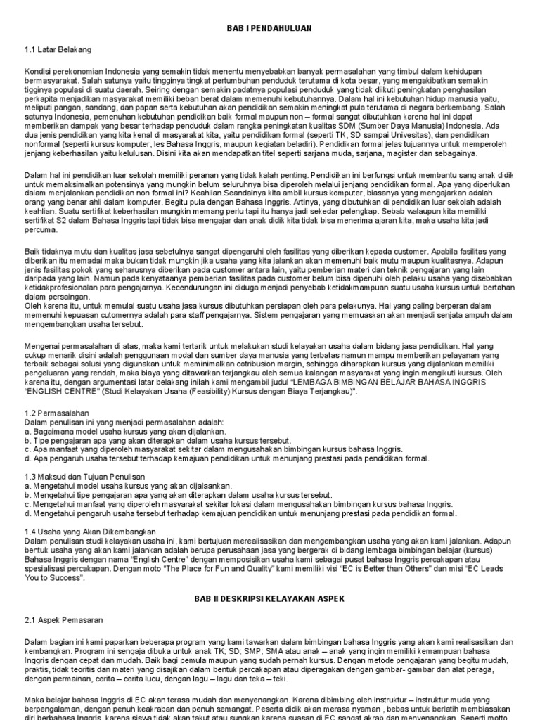 PDF) Contoh Proposal Bisnis Jasa Bimbel | Annisa Salam - Academia.edu
