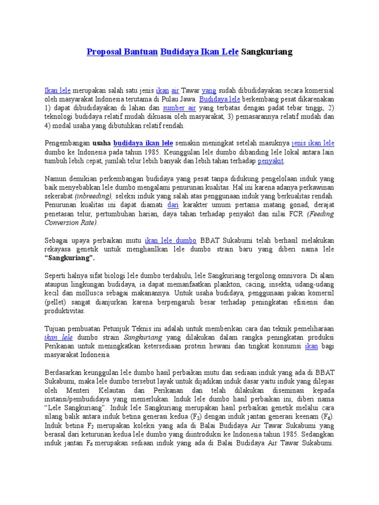 DOC) Contoh Proposal Budidaya Lele Sangkuriang | den lip - Academia.edu