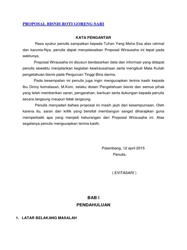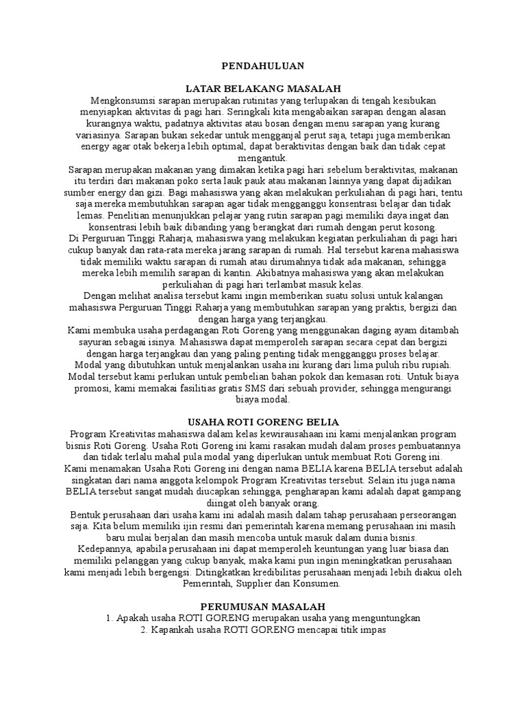 DOC) Contoh proposal kewiurausahaan makanan roti goreng.doc | Faisal Saifudin - Academia.edu
