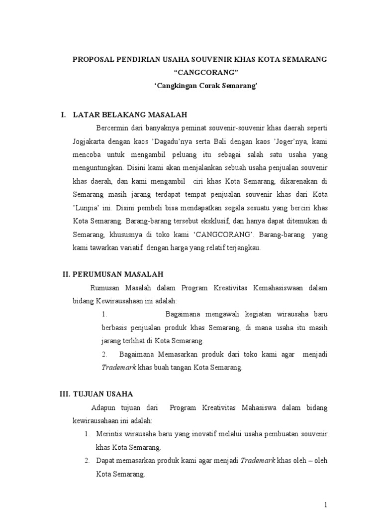 DOC) Contoh Proposal Usaha Bisnis -Kali ini Blog Sistem | Saarah AsZahra - Academia.edu