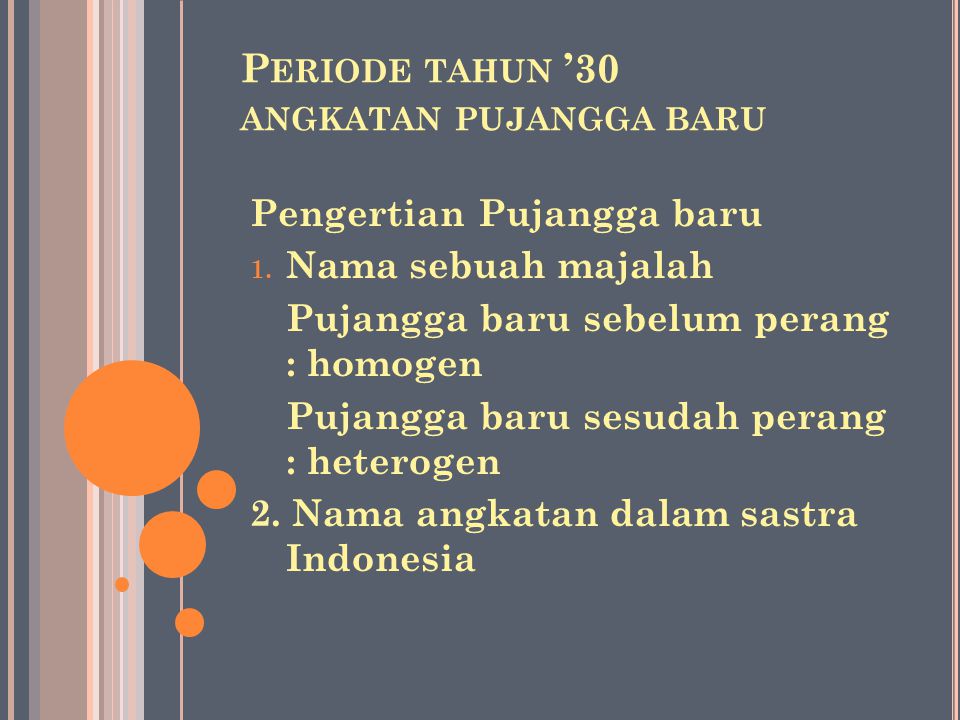 PERIODE TAHUN 30 ANGKATAN PUJANGGA BARU | sastra100km