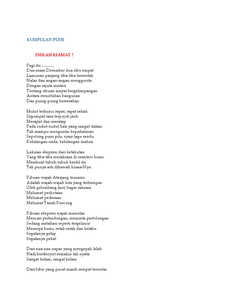 contoh puisi tentang tsunami aceh 2004 beserta majas yg terkandung - Brainly.co.id