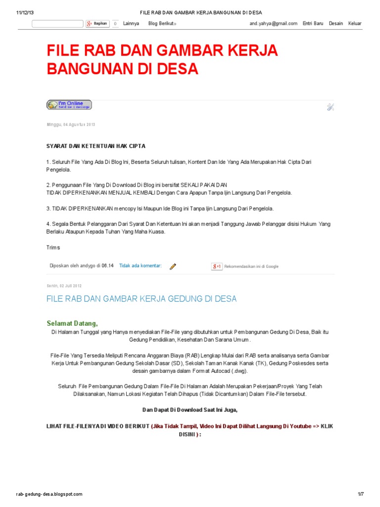FILE RAB DAN GAMBAR KERJA BANGUNAN DI DESA di blog http://rab-gedung-desa .blogspot.com/
