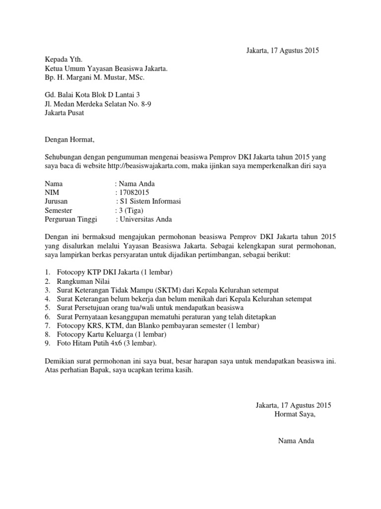 DOC) Contoh surat permohonan beasiswa | putu oka surya atmaja - Academia.edu