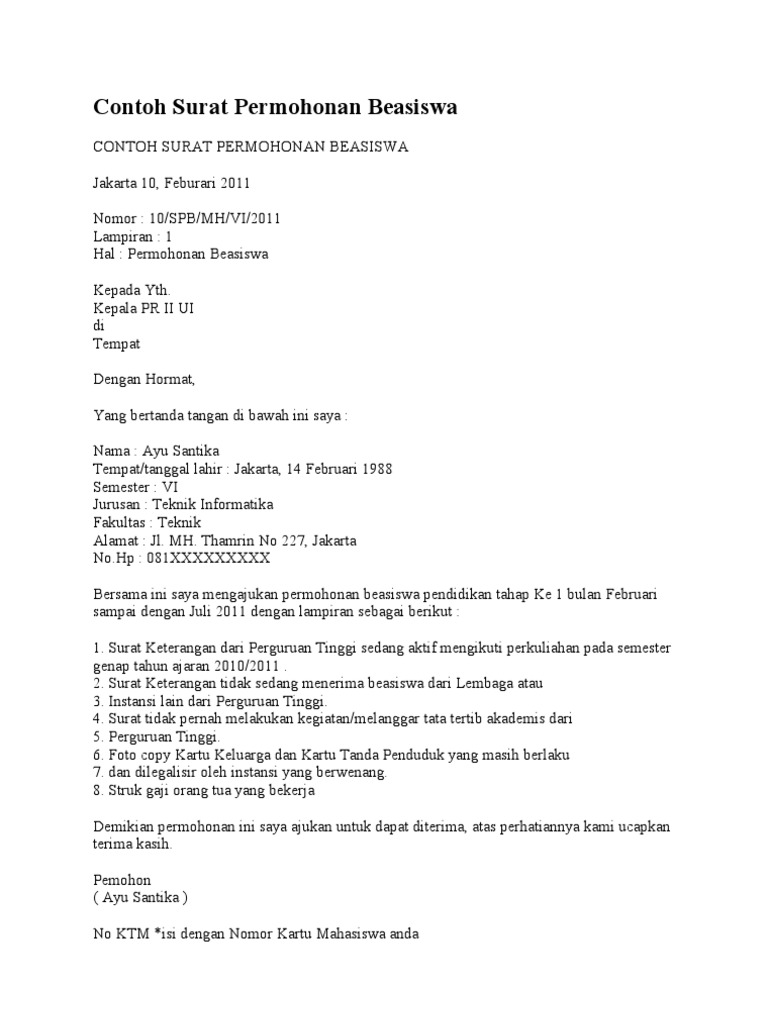 DOC) contoh surat permohonan beasiswa kuliah | devi lisdiani - Academia.edu