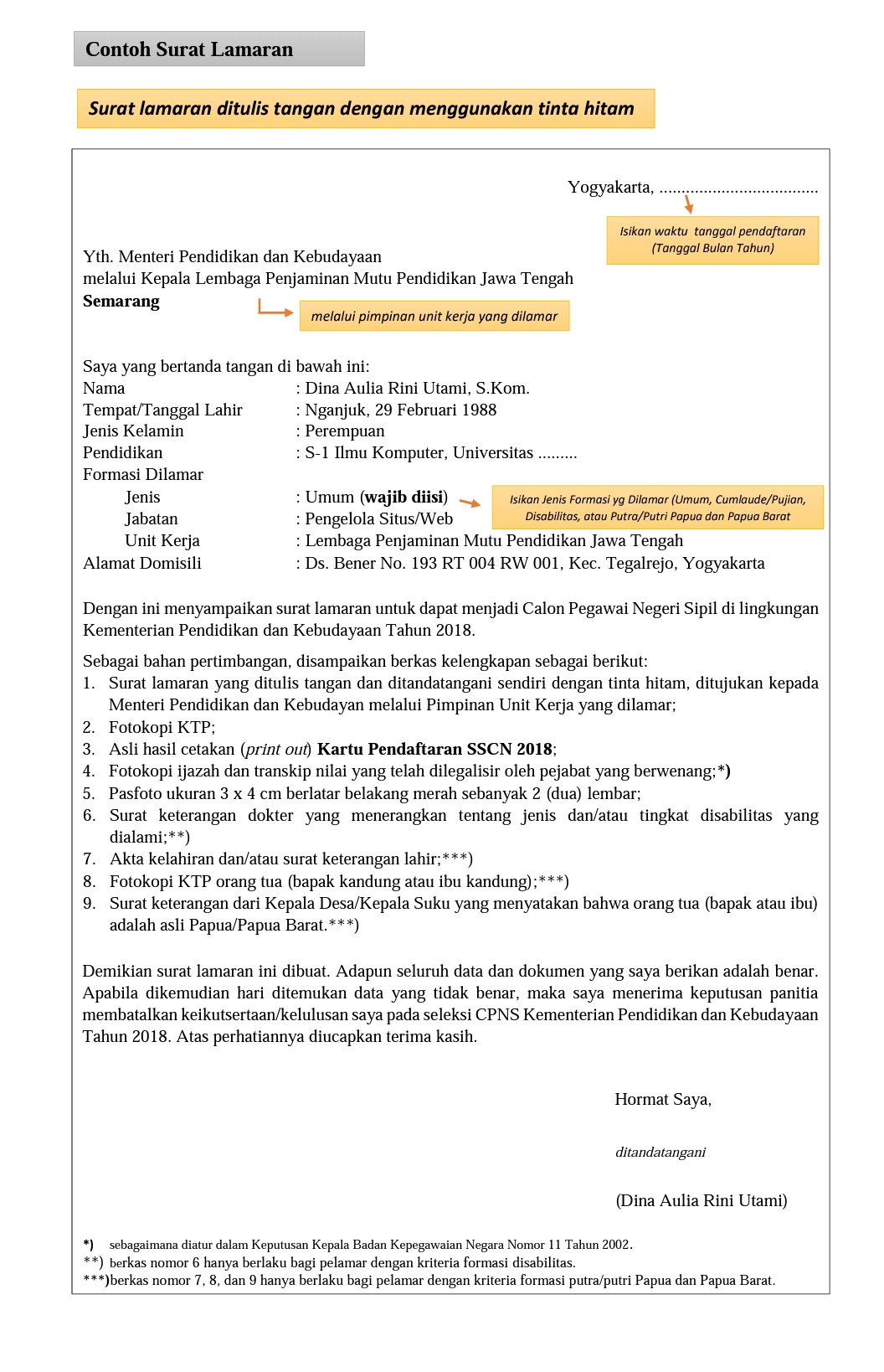 Download Contoh Surat Lamaran CPNS 2018, Pelengkap Dokumen Pendaftaran di SSCN.GO.ID - Halaman 3 - Tribun Jogja
