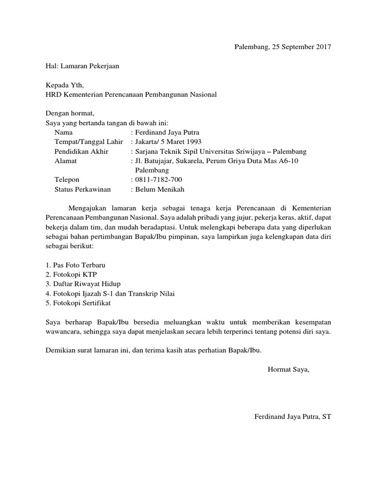 Surat Lamaran Kerja Cpns Kementerian Esdm – ssuhhara