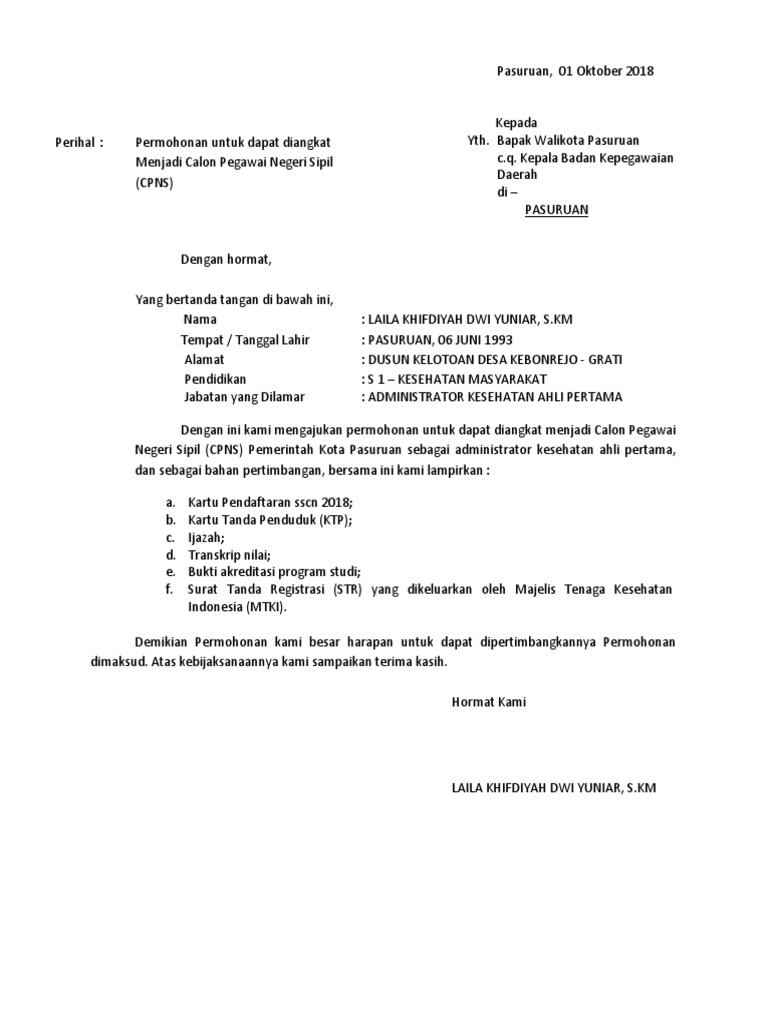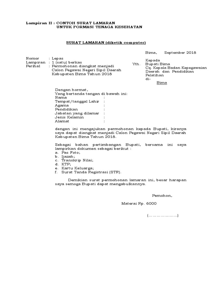 Contoh Surat Lamaran Cpns Kesehatan 2018