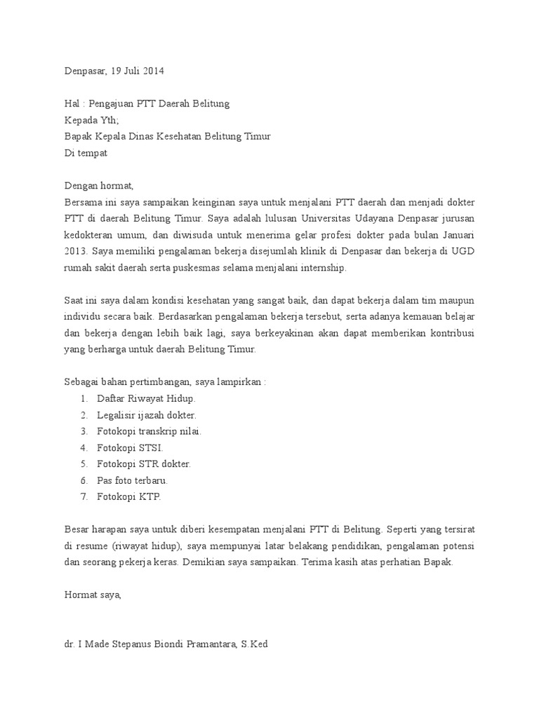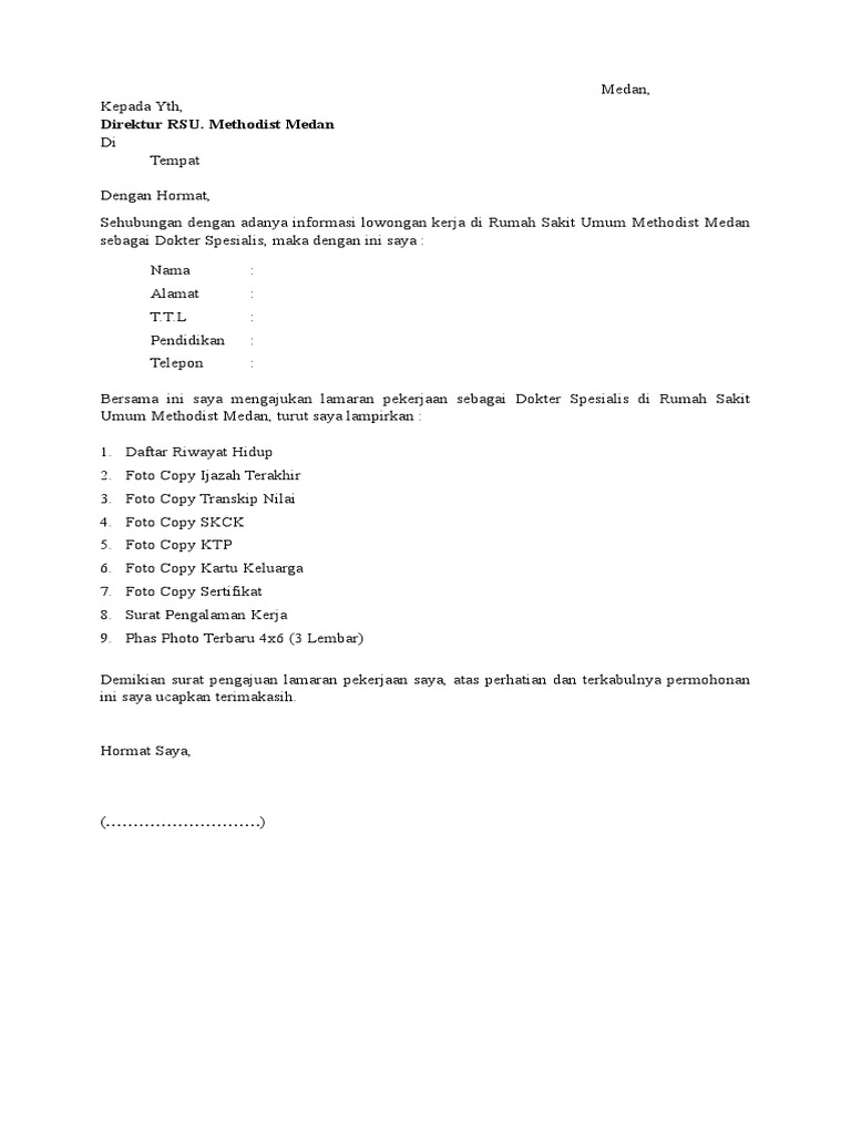 Contoh Surat Lamaran Dokter Umum Ke Rumah Sakit
