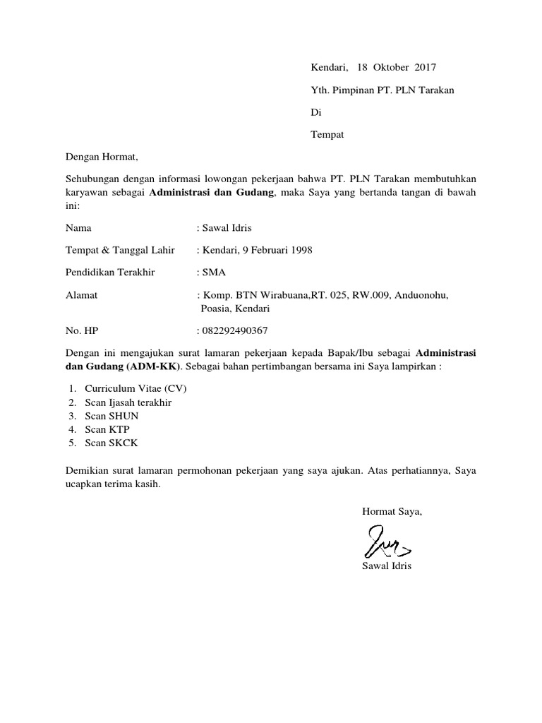 Contoh Surat Lamaran Kerja Di Pt Pln - Barisan Contoh