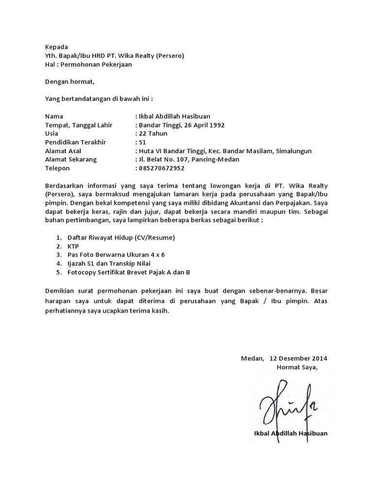 Contoh Surat Lamaran Kerja Untuk Pt Inalum
