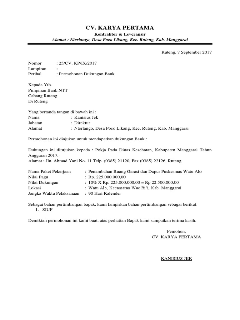 Contoh Surat Lamaran Kerja Di Bank Ntt