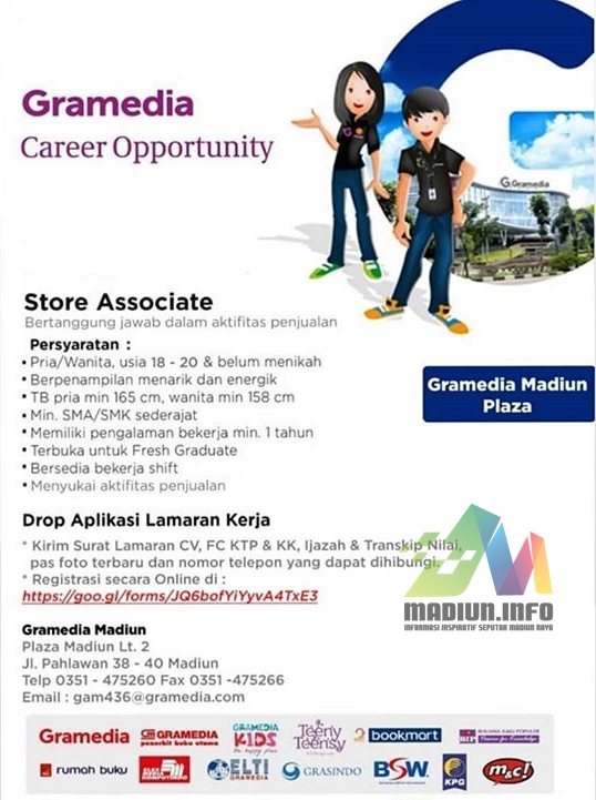 Lowongan Kerja Gramedia Plaza Madiun | Madiun.Info Madiun Raya Berita Lowongan Kerja Online