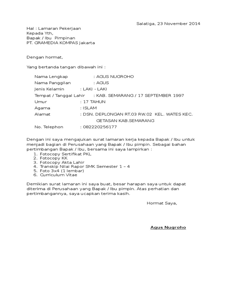 Contoh Surat Lamaran Kerja Gramedia - Our Families Journey