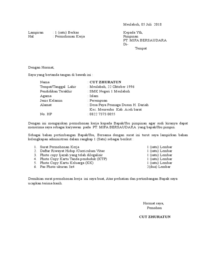 DOC) CONTOH FORMAT SURAT LAMARAN KERJA UNTUK LULUSAN SMA/SMK/MA/ SEDERAJAT | Achmad Hilmi - Academia.edu