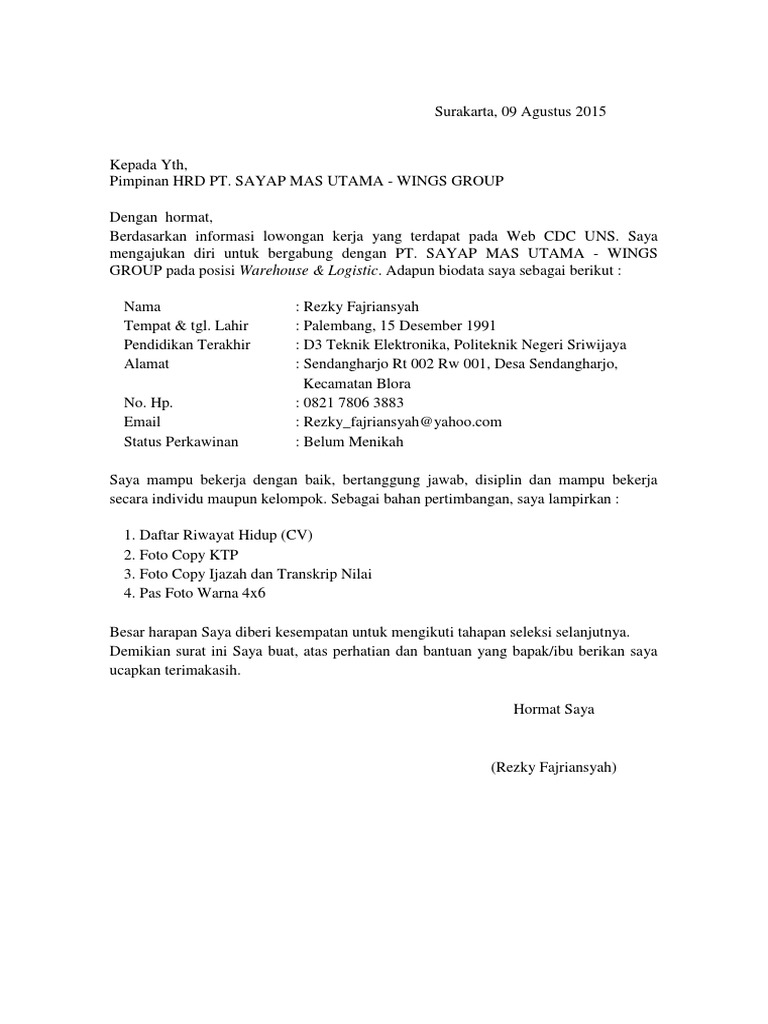 Contoh Surat Lamaran Untuk Pt Wings – Backup Gambar