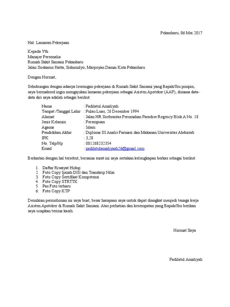 Contoh Surat Lamaran Kerja Yang Simpel | TutorialPedia