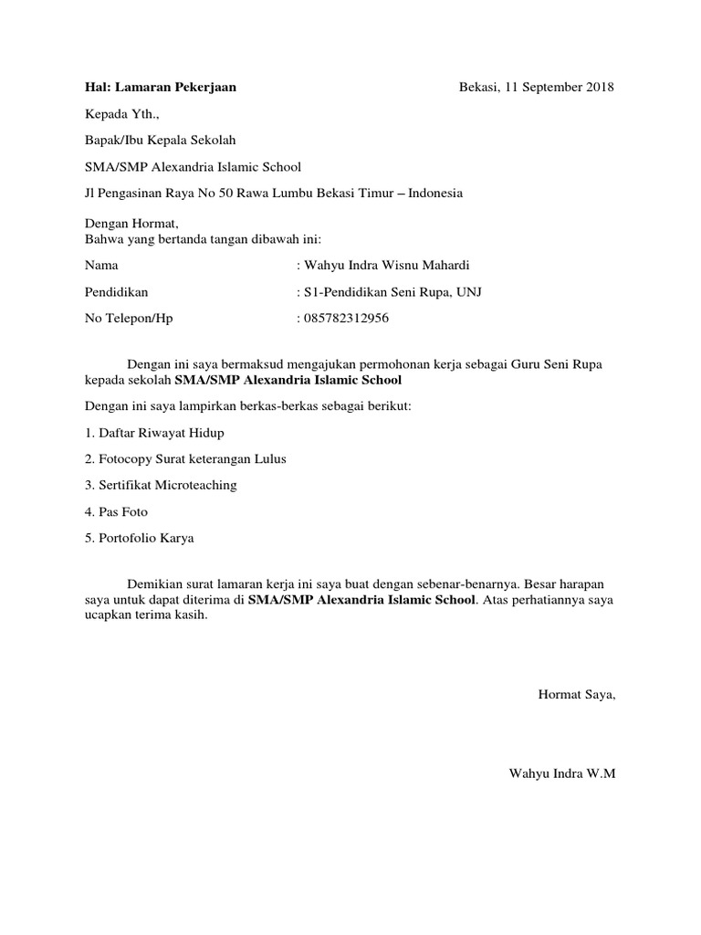 Download : 5 Contoh Surat Lamaran Kerja Guru SMA Doc / Pdf - Portal Uang