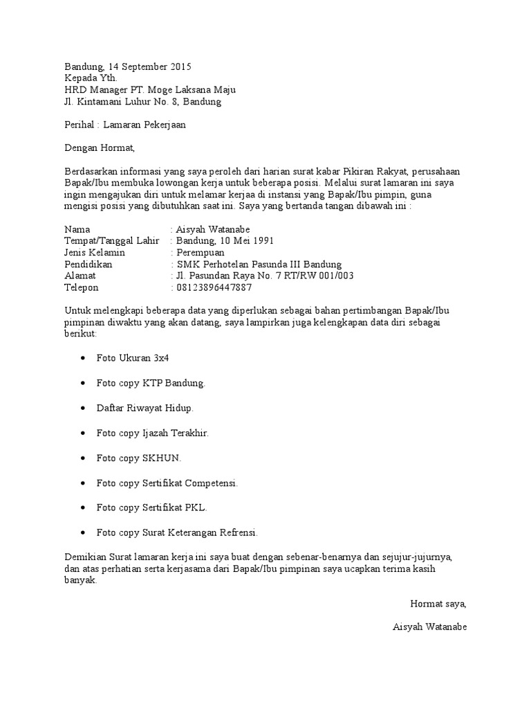 DOC) Contoh surat lamaran kerja | Iki Dans - Academia.edu