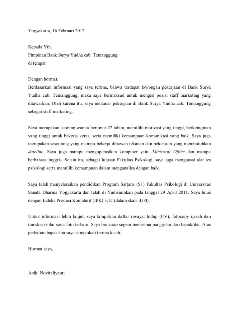 Surat Lamaran Kerja Format Yang Benar Research Papers - Academia.edu