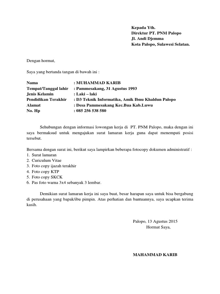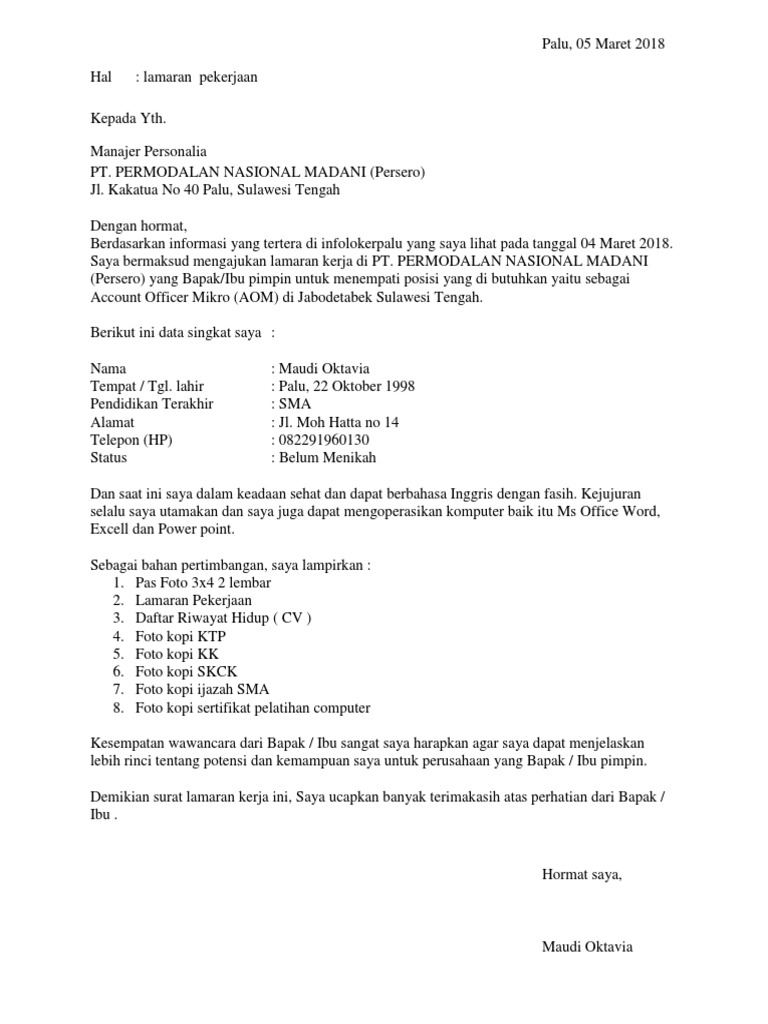 Contoh Surat Lamaran Kerja Di Pt Pnm Ulamm - Kumpulan Kerjaan