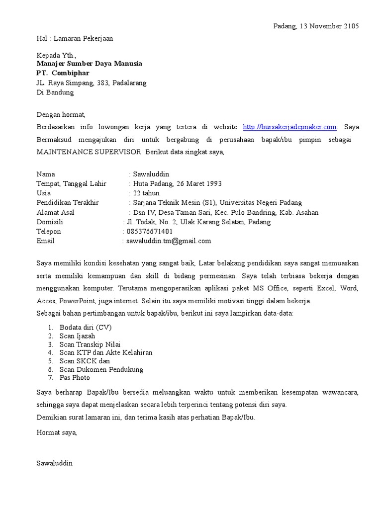 DOC) Contoh surat lamaran kerja | Iki Dans - Academia.edu