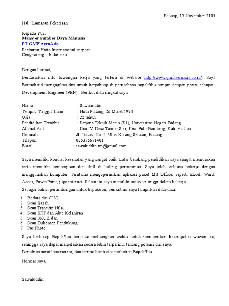 Surat Lamaran Pt. Gmf Aero Asia