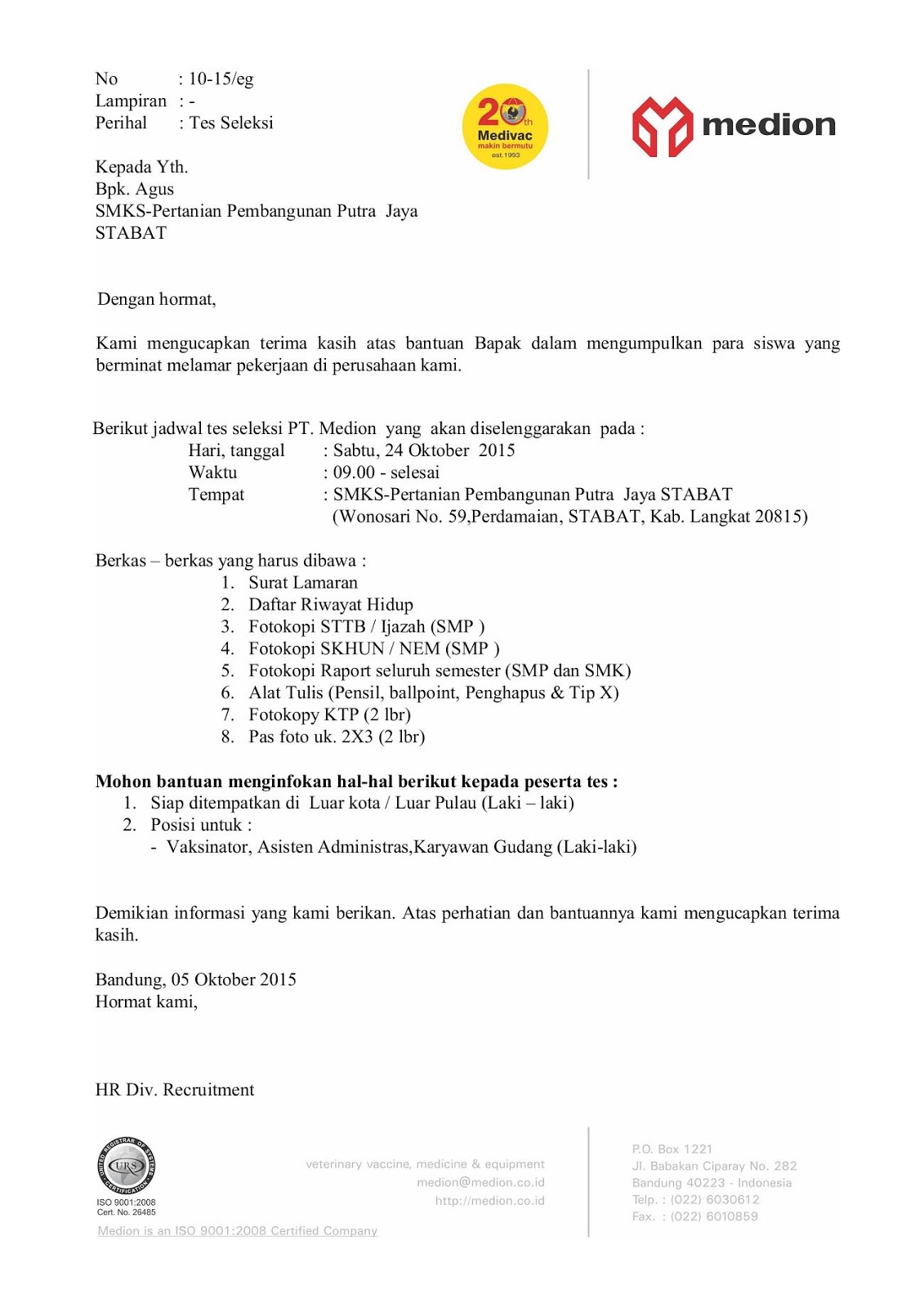 Surat Lamaran Kerja Di Pt Medion - Contoh Surat Lamaran Kerja