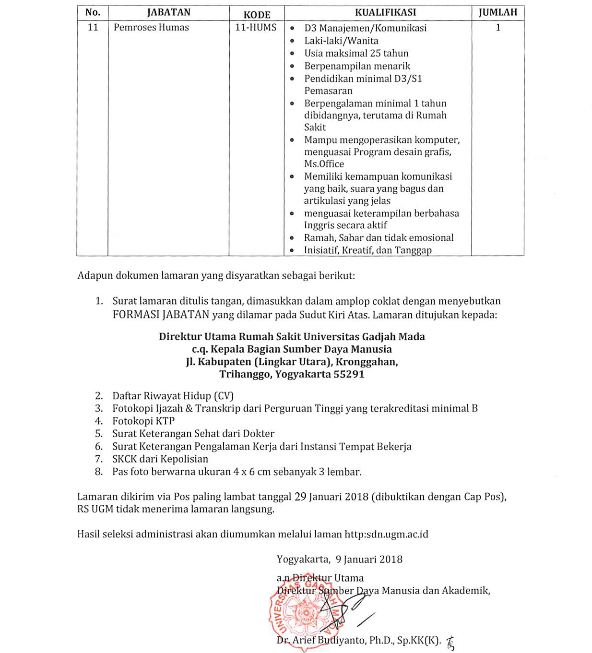 Lowongan Kerja Rumah Sakit Universitas Gadjah Mada Tahun 2018 | Lowongan Kerja Terbaru Lulusan SMA D3 dan S1 Semua Jurusan 2020