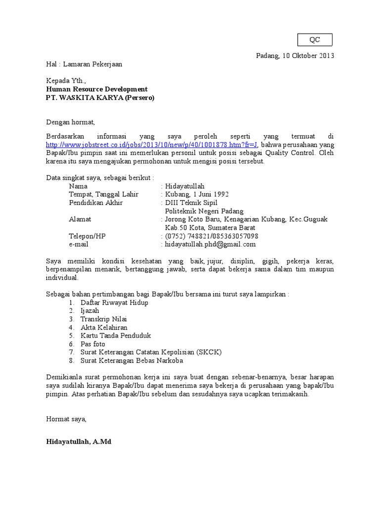 Contoh Surat Lamaran Kerja Bagian Quality Control - Contoh Surat Lamaran Kerja