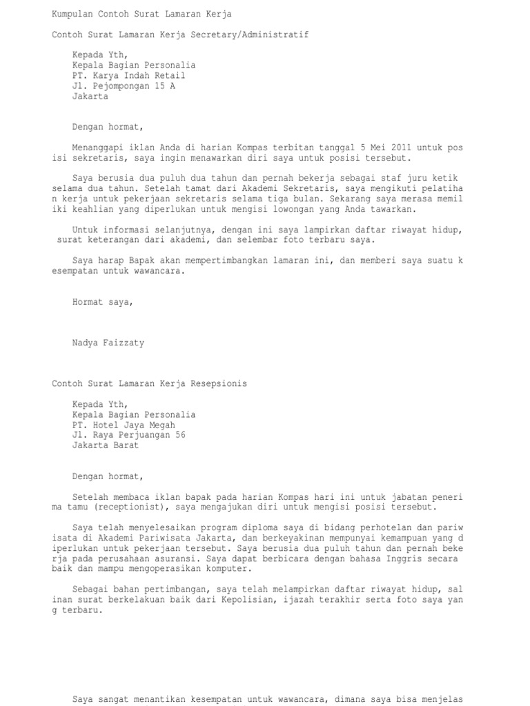 DOC) Contoh surat lamaran kerja | Iki Dans - Academia.edu
