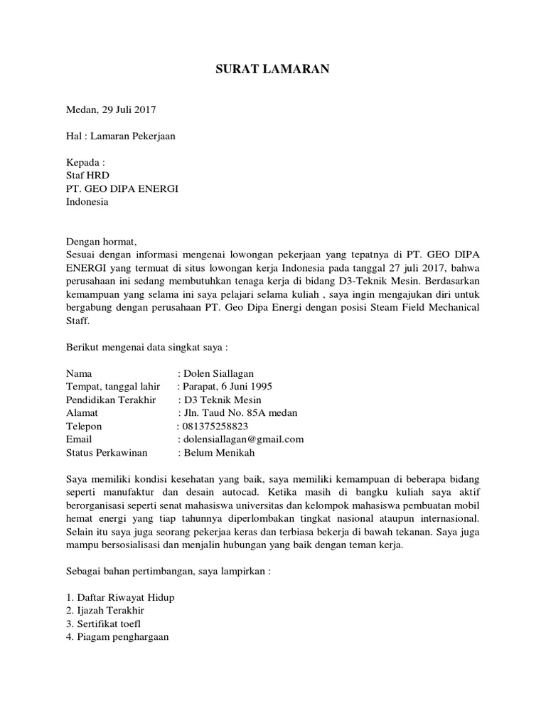 Contoh Surat Lamaran Kerja Dalam Job Fair | Surat, Pendidikan, Inspirasi