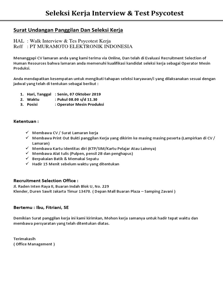 Contoh Surat Lamaran Kerja Walk In Interview - Kumpulan Contoh Gambar