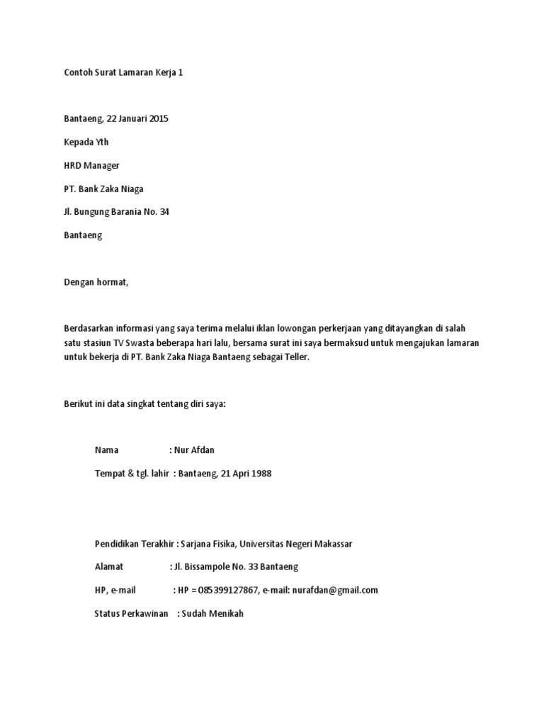 Contoh Surat Lamaran Kerja - Posts | Facebook
