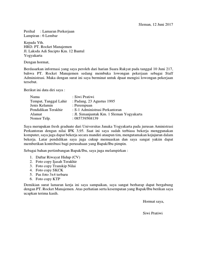 surat lamaran kerja fresh graduate doc Bantul