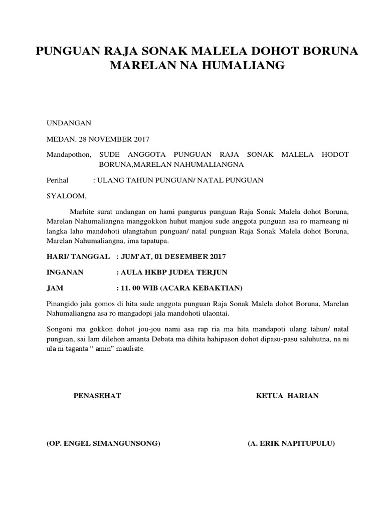 Contoh Surat Undangan Natal Naposo Hkbp - Sample Surat Undangan